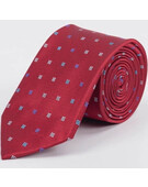 Аренда галстука красного цвета с фактурным разноцветным узором для мужских костюмов