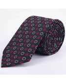 Аренда черного галстука с круглым и кольцевым узором красно-белого цвета для мужского костюма