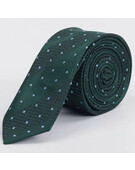 Аренда узкого галстука в полоску зеленого цвета с голубым узором для мужских костюмов