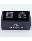 Аренда запонок с прямоугольной вставкой пурпурно-розового цвета для мужских костюмов