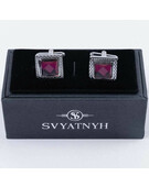 Прокат запонок с пурпурно-розовой вставкой для мужских костюмов