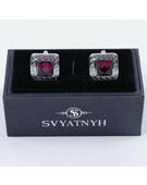 Аренда запонок с бордовой вставкой для мужских костюмов