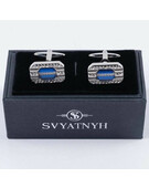 Прокат запонок с вставкой синего цвета для мужского костюма