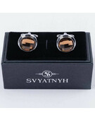 Прокат запонок круглой формы с оранжевыми вставками для мужских костюмов