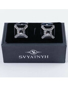 Аренда запонок с украшением и черными вставками для мужских костюмов