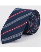 Синий галстук напрокат с выделенными разноцветными полосами для мужских костюмов