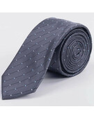 Купить Прокат узкого галстука светло-серого цвета в полоску с бело-голубым точечным узором для мужского кос в интернет-магазине www.arenda-kostumov-kzn.ru с доставкой. Прокат узкого галстука светло-серого цвета в полоску с бело-голубым точечным узором для мужского кос, артикул RoSS-101 true: читать описание, характеристики, фото